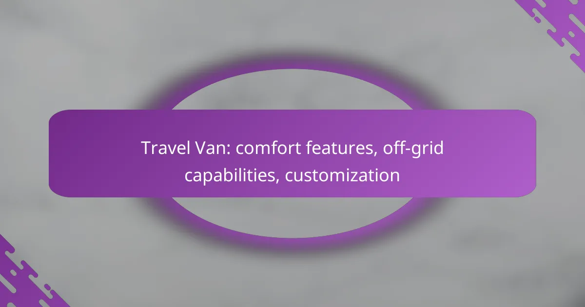 When selecting a travel van, key features to consider include space and layout, fuel efficiency, storage capacity, and safety features. These elements significantly impact comfort, usability, and overall travel experience.