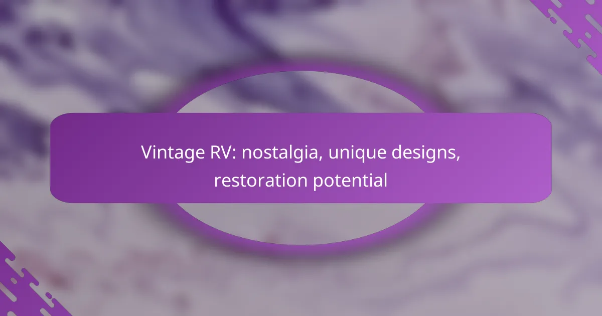 Owning a vintage RV offers a unique blend of nostalgia and distinctive design, making it a cherished choice for travel enthusiasts. These classic vehicles not only evoke memories of simpler times but also present exciting restoration potential for those looking to breathe new life into them. With a vibrant community of enthusiasts, restoring a vintage RV can be a rewarding journey filled with creativity and connection.